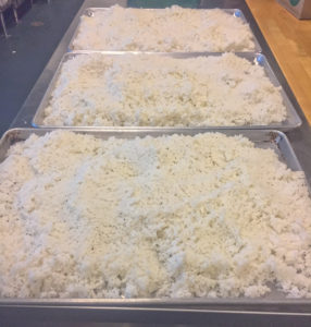 Fortunately, because of the connections I’ve forged with Slow Fish and some outstanding chefs, I found what I needed. A couple of chefs, Kelly Whitaker of Basta in Boulder, and my dear friend Evan Mallett of Black Trumpet in Portsmouth, NH helped me figure out how to cook up about 30 pounds of rice (which was way out of my comfort zone.) Evan also chopped and connected me with a chef for the pot and three locally sourced chickens.
