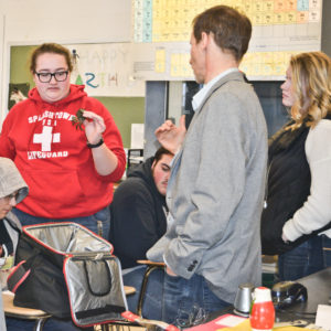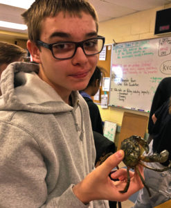 Students in the senior marine science class engaged in the discussion about why European green crabs are capable of significantly shifting ecosystem balance. Naturalized “residents” in North America since the early 1800s, green crabs are everywhere. You can scarcely turn over a rock without finding at least one along New England coasts.