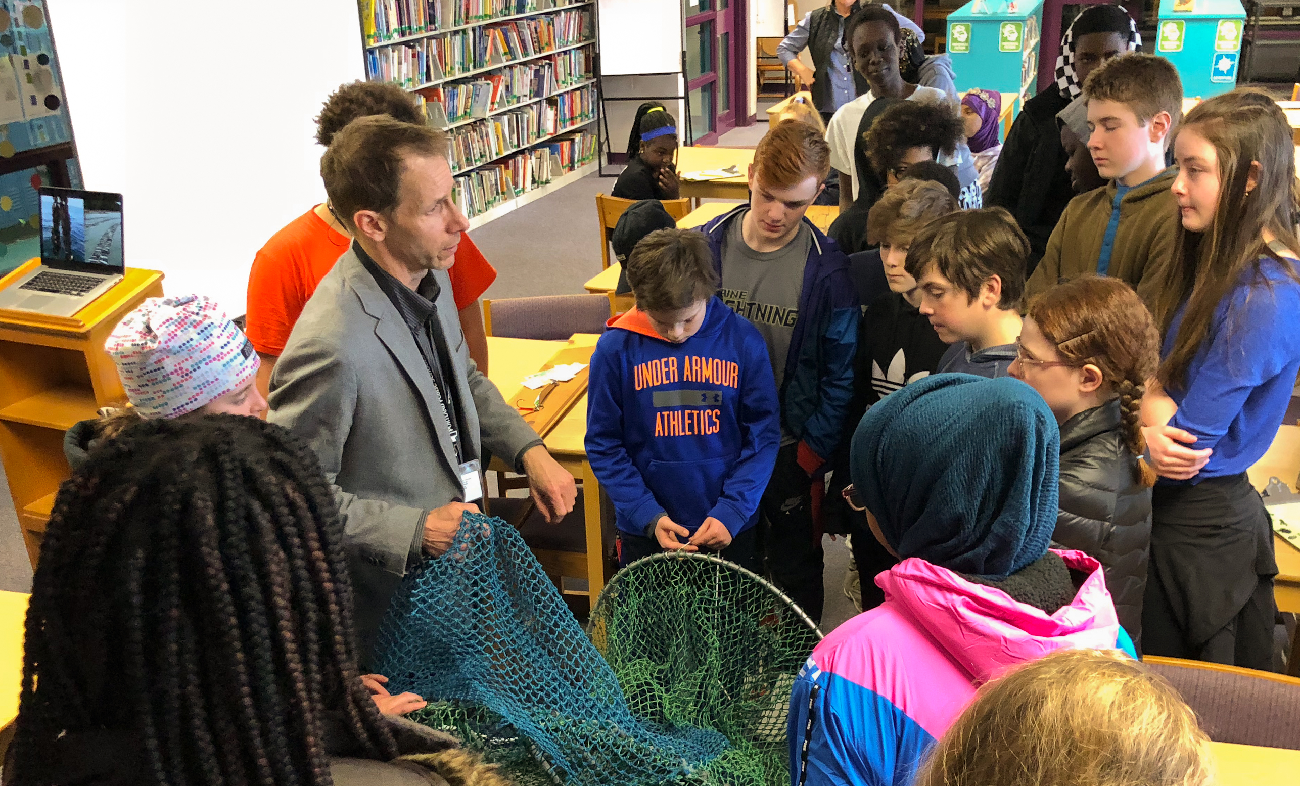 The focus on indigenous subsistence fishing was of particular importance to the 9th graders in Jenny Crowley’s ecology class at Casco Bay High School for Expeditionary Learning in Portland last month. They were learning about human interaction with natural resources and the impact humans can have on their surrounding environments. CBHS immerses students in “expeditions,” which allow them to dive deep into particular issues or topics while incorporating other facets of their education.