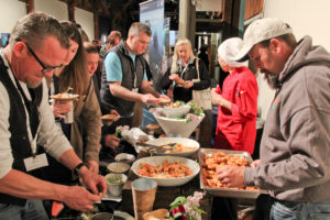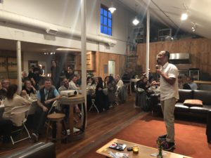 The San Francisco event took place in a cool warehouse (no sex floats) that we adapted to suit large group discussions, as well as smaller World Café roundtables and PechaKucha (or “Peche” Kucha) mini slide presentations/stories. We also had a Seafood Throwdown, off-site oyster, dinner, and movie events..