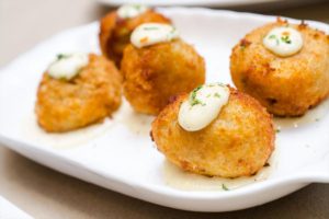 Croquettes represent a connection to past and present. This recipe is based on an ancient preservation method that has been used worldwide for centuries. It’s not only delicious, but to me embodies the bridge between time and place. While we generally enjoy the luxury of not needing to capture and preserve what is here now, I feel it’s important to remind ourselves of that luxury. — Chef Mark Segal, Tinos Greek Kitchen